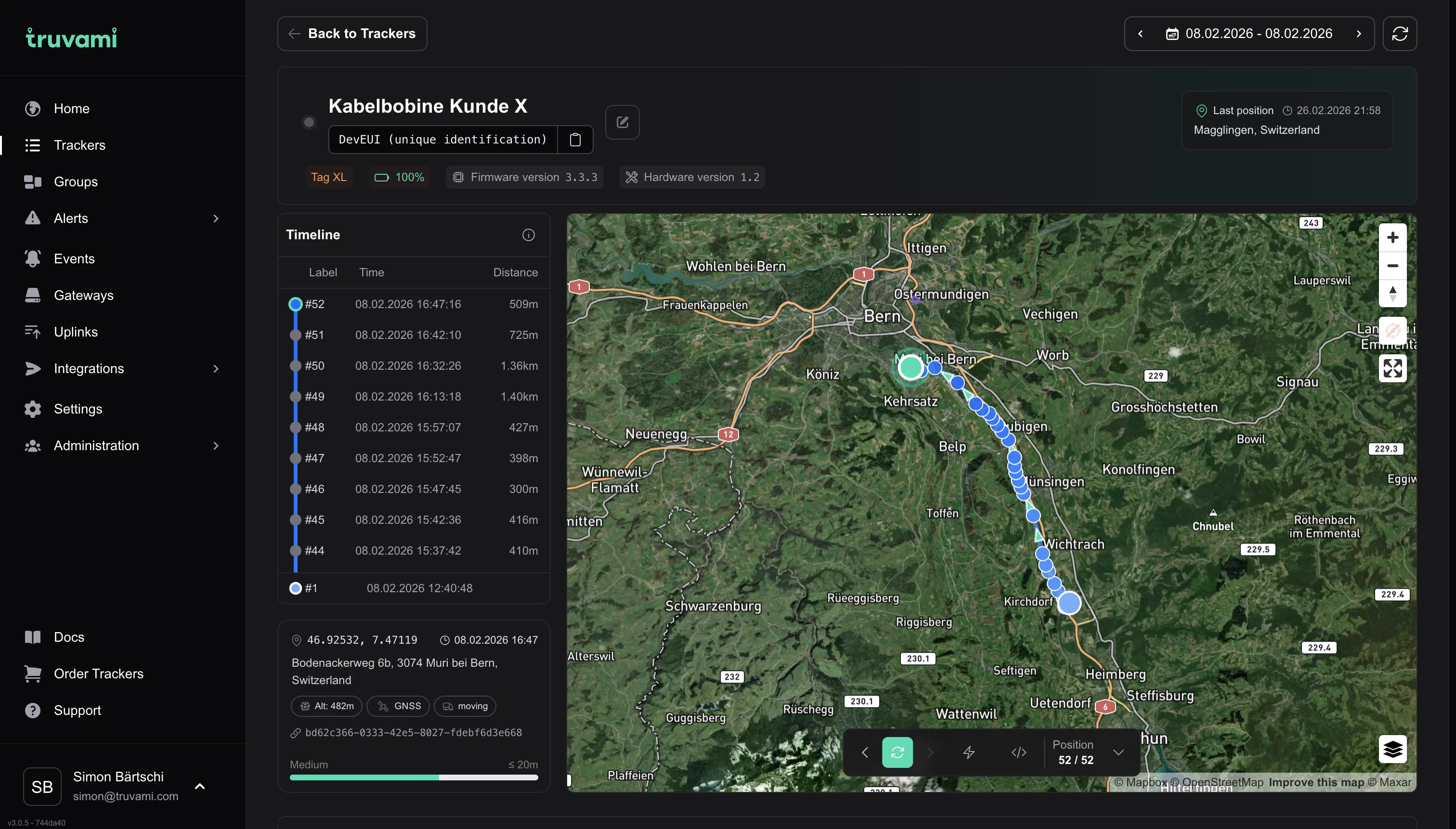 Mit der Truvami Lösung sind Sie in der Lage, Ihre Bobinen zu verfolgen - wo sie sind, wo sie waren und wie lange Sie bereits ausser Lager sind. Damit können Sie zeitnahe Rückführungen ermöglichen, um den Umlauf zu erhöhen, saubere Planbarkeit zu schaffen und vieles mehr.