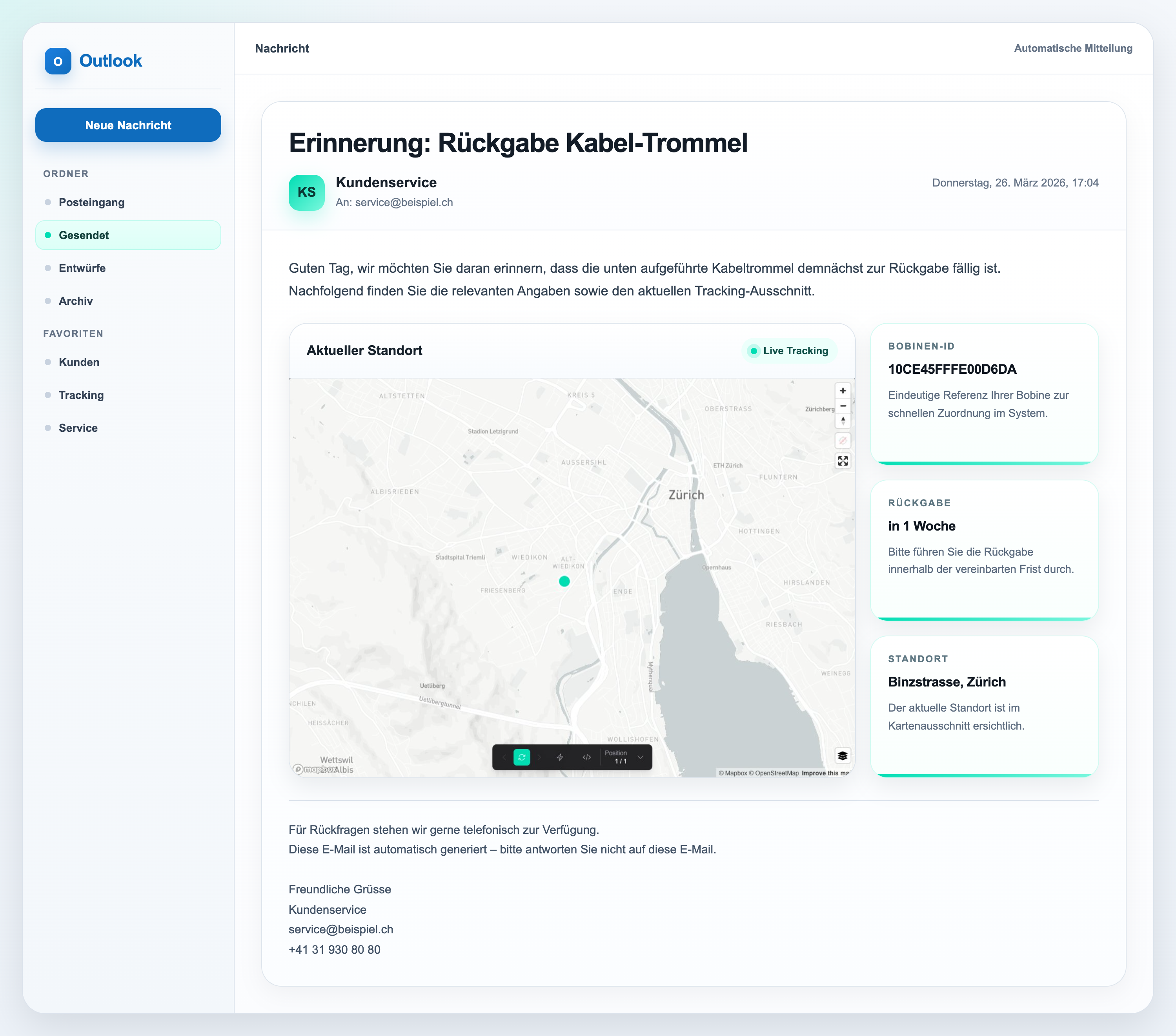 Viele Unternehmen erfassen Bobinen beim Lager-IN/OUT sauber im System. Sobald sie sich jedoch beim Kunden oder auf Baustellen befinden, fehlt oft die laufende Übersicht über Standort und Aufenthaltsdauer.